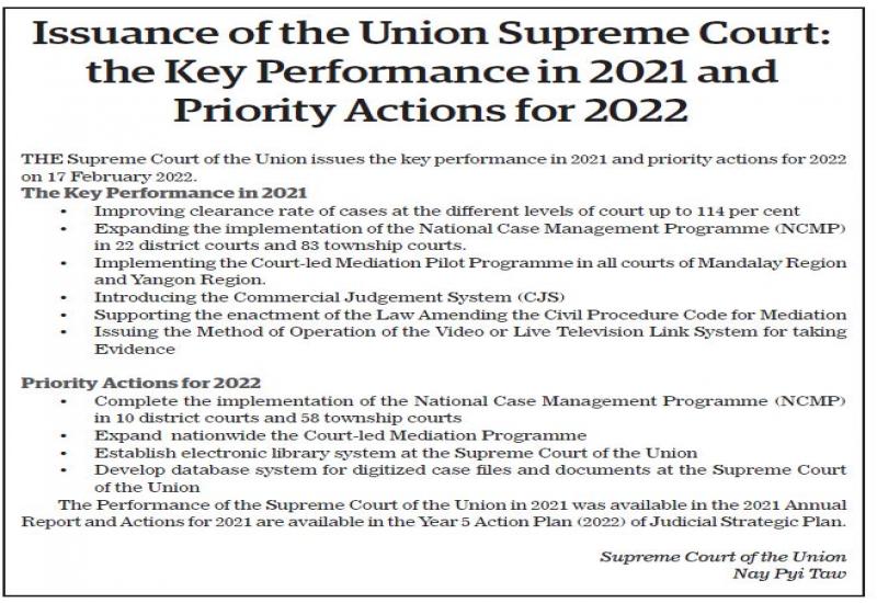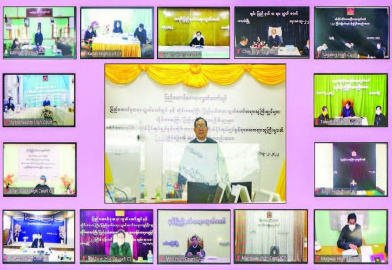 CHIEF Justice of the Union Supreme Court U Htun Htun Oo attended the 22nd virtual coordination meeting of the Union Supreme Court with the State/Region High Courts, Self-Administered Division Court, Self-Administered Zones Courts and District Courts online yesterday.