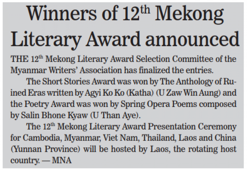 Winners of 12th Mekong Literary Award announced