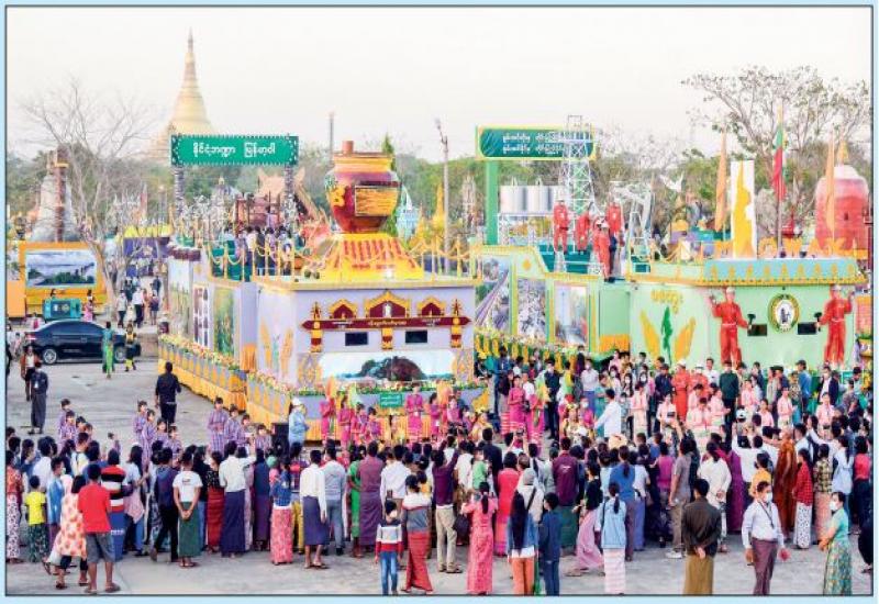 A large group of people visited the Tabaung ground in front of Uppatasanti Pagoda where the parade floats which joined the Diamond Jubilee Union Day Ceremony from Nay Pyi Taw, regions and states were parked yesterday.