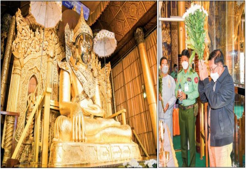 CHAIRMAN of the State Administration Council Prime Minister Senior General Min Aung Hlaing, accompanied by his wife Daw Kyu Kyu Hla, Council members and Union ministers, yesterday morning paid homage to Maha Muni Buddha Image in Kengtung of Shan State (East) and Saturathta Thumingala Pagoda on the Loimwe hill station and viewed development tasks in Loimwe region.