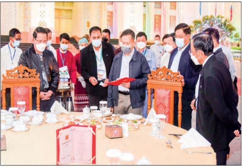 VICE-CHAIRMAN of the State Administration Council Deputy Prime Minister Vice-Senior General Soe Win inspected the table setting for dinner and full dressed rehearsal of ethnic people for the ceremony to mark the Diamond Jubilee Union Day 2022 in Nay Pyi Taw yesterday.