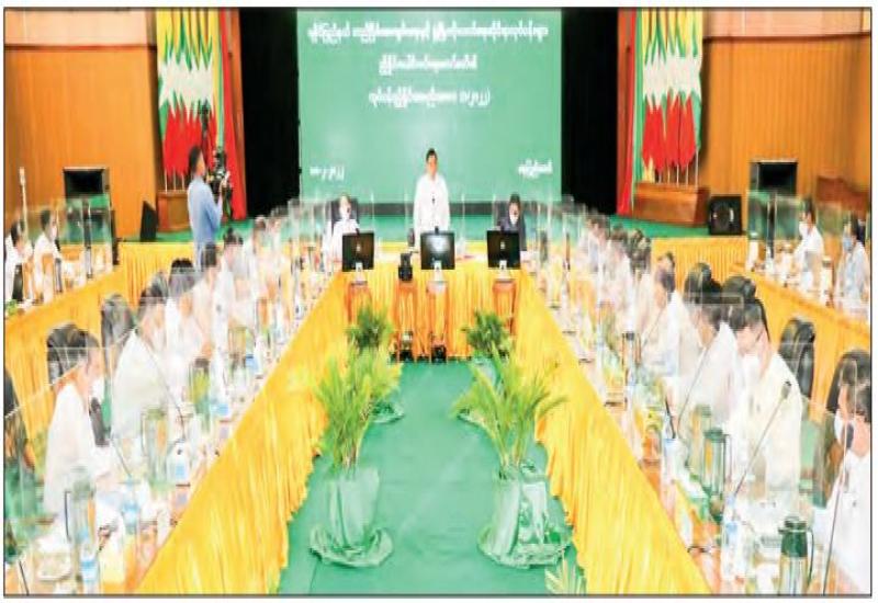 CHAIRMAN of the State Administration Council Prime Minister Senior General Min Aung Hlaing met Magway region cabinet members and district and township-level departmental personnel and discussed regional development yesterday afternoon at the meeting hall of the local military headquarters.
