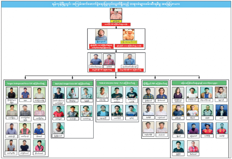 IT has already been announced that a total of 50 suspects — 43 males and seven females, including NLD member Maung Kyaw (aka) Phyo Zeyar Thaw, who led terrorist attacks in Yangon under the instruction of CRPH and NUG terrorist groups, were arrested together with arms and ammunition on 20 November 2021 and NLD member Maung Kyaw (aka) Phyo Zeyar Thaw launched terrorist attacks in Yangon under directives of NUG terrorist group on 22 November 2021.