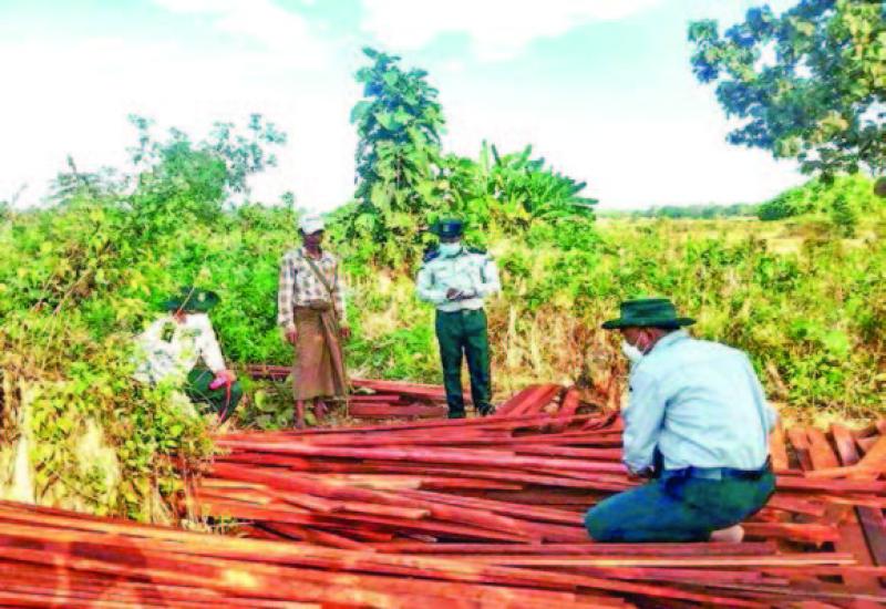 UNDER the management of the Illegal Trade Eradication Special Task Force, a combined inspection team led by the local Forest Department confiscated 47.5822 tonnes of illegal teak (estimated value of K8,088,400) and 2.3162 tonnes of hardwood(estimated value of K347,640, altogether over 49 tonnes of timber from the forest reserves of Toungoo, Pyay and Thayawady districts in Bago Region yesterday.