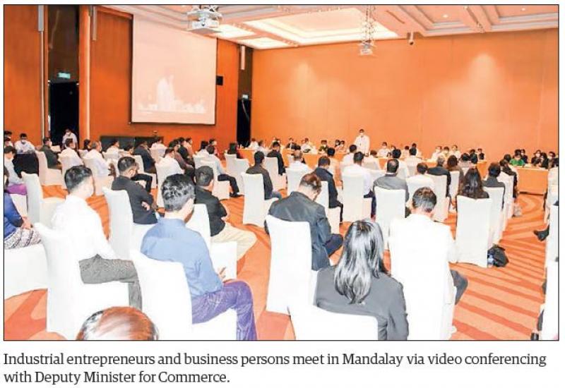 A meeting with industrial entrepreneurs and business owners was held yesterday morning through video conferencing at Pullman Mandalay Mingalar Hotel in Mandalay. At the meeting, Deputy Minister for Commerce U Nyunt Aung gave an opening speech on trade and commodity issues, the Joint Secretary of the Central Committee for on Ensuring the Smooth Flow of Trade and Goods and the secretary of the work committee explained the work of the committees.