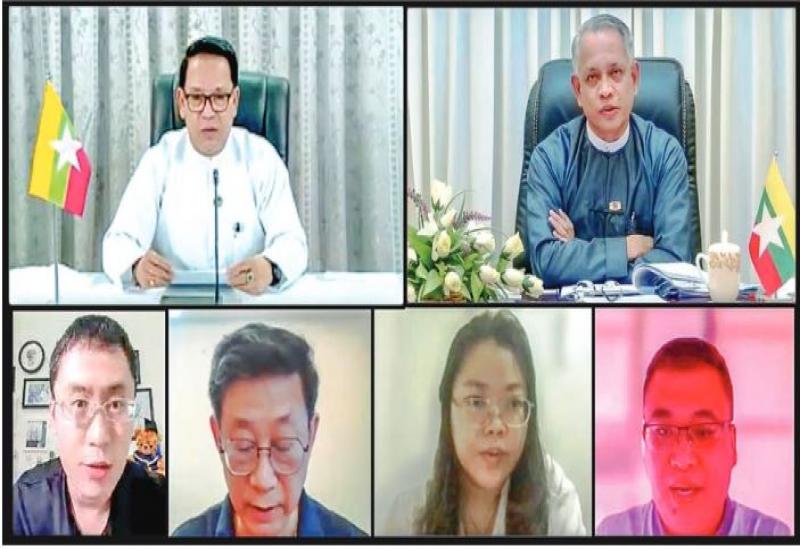 UNION Minister for Information U Maung Maung Ohn and Union Minister for Investment and Foreign Economic Relations U Aung Naing Oo yesterday afternoon virtually met reporters from CCTV, People’s Daily, Guanming Daily and Xinhua News Agency of the People’s Republic of China and replied to questions on the endeavors of the government in battling the COVID-19 pandemic, the promotion of border trade between two countries, efforts to resurge the State economy, bilateral cooperation and implementation of projects, and measures on stability, safety and tranquility.