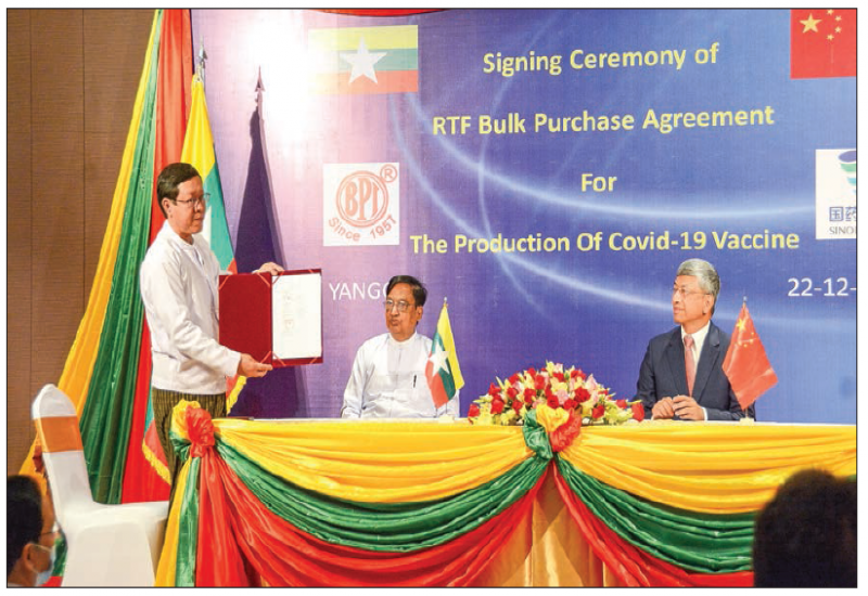 THE signing ceremony of the agreement to purchase and produce Sinopharm COVID-19 vaccine in Myanmar was held yesterday evening at Lotte Hotel, in Mayangon Township, Yangon Region.