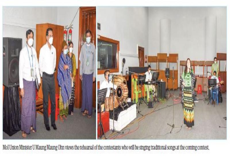 UNION Minister for Information U Maung Maung Ohn met nine contestants from regions and states who will be competing in Group C of the “Happy Together Music Festival” in commemoration of the Diamond Jubilee Union Day at the Myanma Radio and Television (MRTV) meeting hall, yesterday morning.