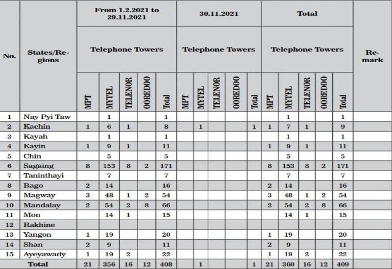 EFFORTS are being made to set out a plan for the stability and development of the country and for cooperating with the ethnic peoples, officials said. Terrorists are attempting to hamper the implementation of the future activities of the nation and to overthrow the government’s administrative machinery. From 1 February to 30 November 2021, a total of 409 telephone towers were destroyed by terrorist groups.