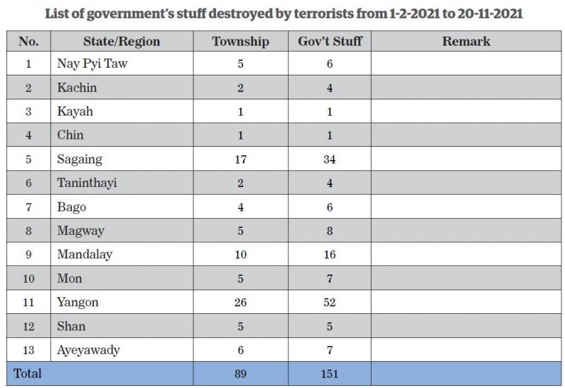 CRPH and NUG terrorists targeting to committing the utter devastation formed PDF terrorist group, murdering the people peacefully residing in some areas with various reasons, setting fire to and robbing State owned buildings, public hospitals, schools, housings, villages, markets, State owned banks and private banks.
