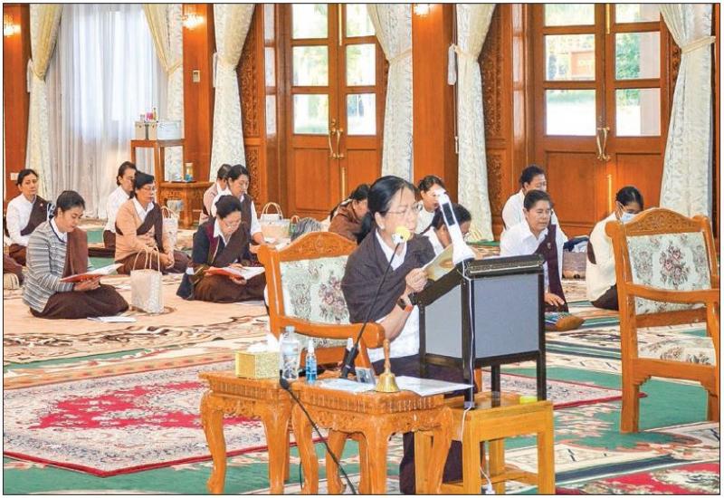 THE religious team of the families of the Commander- in-Chief (Army,Navy and Air) Office held the victorious ceremony of reciting five volumes of Maha Pathana Treatise at Anawrahta Hall of the Office of the Commander-in-Chief (Army) yesterday morning, attended by Daw Kyu Kyu Hla, wife of State Administration Council Chairman Prime Minister Senior General Min Aung Hlaing, swore and prayed at the ceremony and shared merits gained. Afterwards, she recited Buddha Sasana Ciram Titthatu three times together with the attendees to close the ceremony.