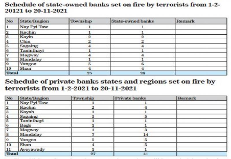 THE CDF armed terrorist group set fire to the township general administration department office and the office of the Head of the Department of Immigration in Kanpetlet Township in Chin State on 23 November.