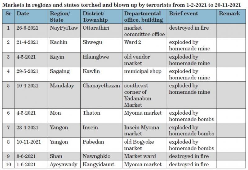 CRPH and NUG terrorists targeting to committing the utter devastation formed PDF terrorists, murdering the people peacefully residing in some areas for various reasons, setting fire and robbing State-owned buildings, public hospitals, schools, housings, villages and markets.