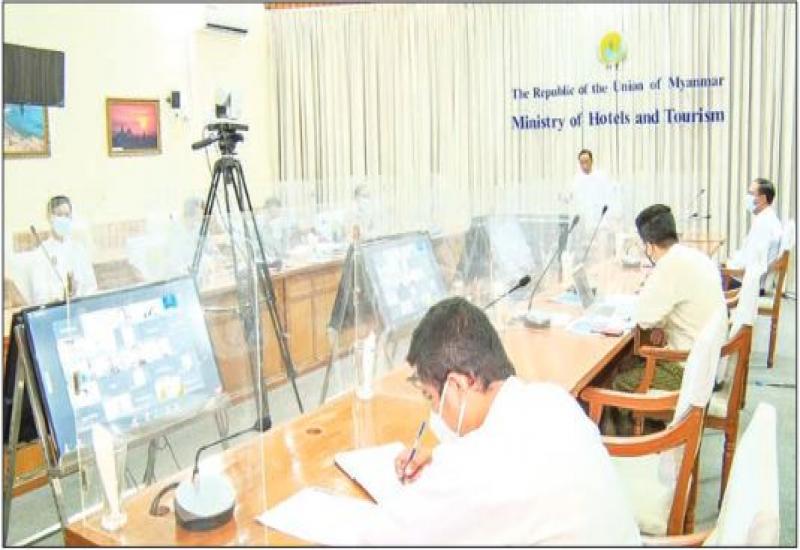 UNION Minister for Hotels and Tourism Dr Htay Aung attended the Awareness Programme on Service Jobs and Skills Assessment for Banking Services and Microfinance Services in Ottara District and Dekkhina District in Nay Pyi Taw via videocon-ferencing yesterday.