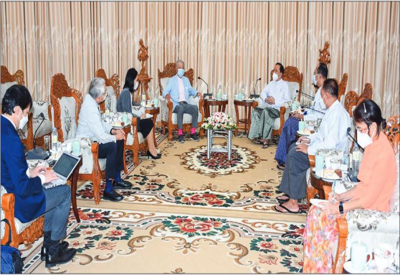 UNION Minister for Health Dr Thet Khaing Win held a talk with a delegation led by Chairman of the Nippon Foundation Mr Yohei Sasakawa at meeting hall of the Ministry of Health yesterday.