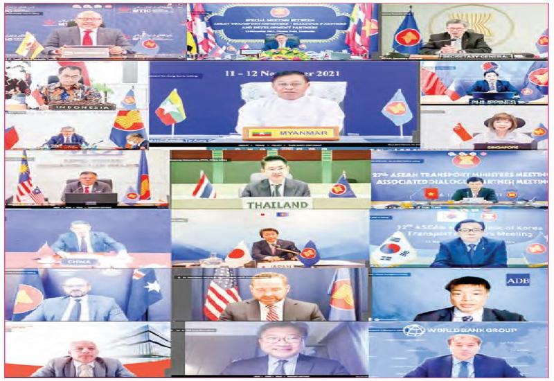 UNION Minister for Transport and Communications Admiral Tin Aung San attended the 19th ASEAN-Japan Transport Ministerial Meeting, 12th ASEAN- Korea Transport Ministers’ Meeting and special meetings for ASEAN-Dialogue partners and development partners by videoconferencing system yesterday.