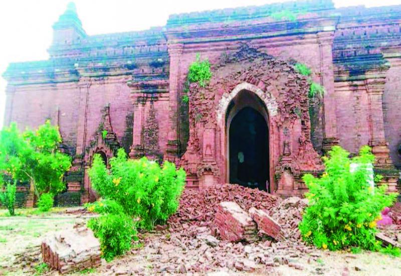 THE torrential rainfall hit Bagan Ancient Cultural Zone of NyaungU Township, Mandalay Region on 17 and 18 October, resulting in damages to some temples, NyaungU District Administration Body stated. The 43.5 feet long wall with 6 inches thick bricks in the northwest of Saytanagyi Pagoda (Temple No 987) collapsed at 3 pm on 17 October. Temple No 2002 located in Taungbi village of NyaungU Township were also damaged slightly at 5:30 pm, according to the Department of Archaeology and National Museum (Bagan Branch).