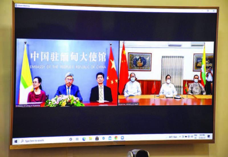 AN online handover ceremony was held yesterday to deliver 1 million units of vaccines out of 2 millions and 1,001,600 needles donated by the Chinese government to Myanmar.