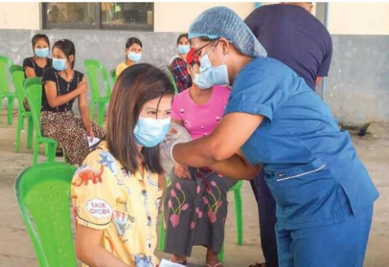 HEALTHCARE officials gave the second dose of COVID-19 vaccines to workers from four factories at Htantabin textile factory, No. 4 Ward, Htantabin Township, northern Yangon District on 12 October.