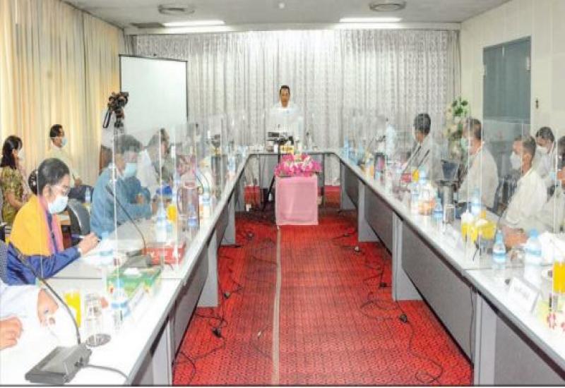 UNION Minister for Information U Maung Maung Ohn, accompanied by the officials from the Myanmar Press Council, Myanmar Motion Picture Organization, Myanmar Music Association, artistes, and TV, FM broadcasters, inspected the production work under the COVID-19 rules and regulations at the MWD (Myawady) Centre yesterday. Firstly, the Union Minister addressed the gathering at the theatre of the MWD Centre. He said new presentations are being given priority to the people in the form of public service, and it is time for artists to make the people suffering from the pandemic smile with their artistic skills, adding relaxation of COVID-19 rules and regulations and support will be provided as the disease is under control.