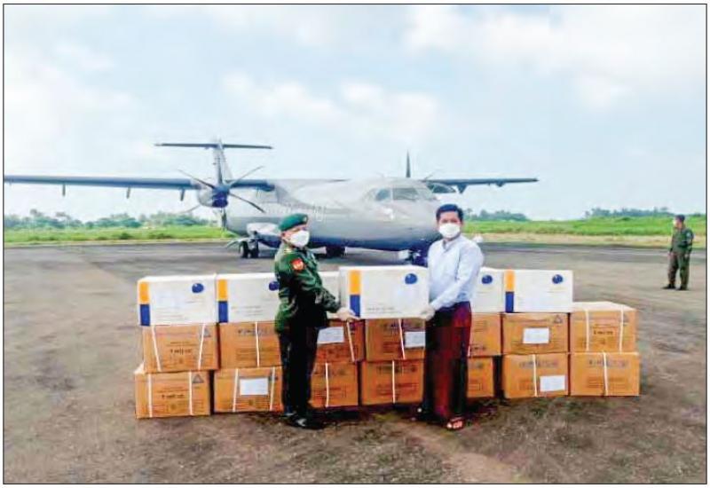 COVID-19 vaccines were delivered to Sittway and Thandwe townships in Rakhine State by military plane yesterday morning.