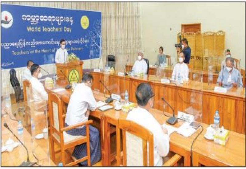THE Ministry of Education held a ceremony to celebrate 2021 World Teachers’ Day yesterday morning in Nay Pyi Taw. At the ceremony, Deputy Minister for Education Dr Zaw Myint read out the message sent by Chairman of the State Administration Council Prime Minister Senior General Min Aung Hlaing.