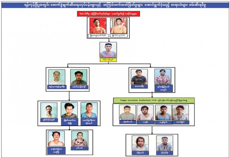 IT has already been announced that 9 suspects, including Hein Kyaw Lwin -- 8 males and 1 female, who participated in mine attacks and violence in Dagon Myothit (South) Township together with 1 pistol, 58 assorted bullets, 50 (tical) of C4 gun power and other explosives, were arrested on 28 August.