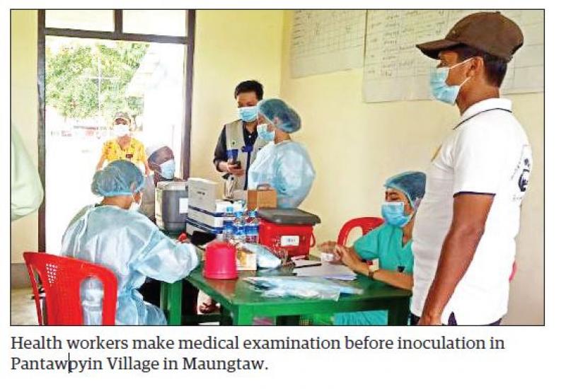 THE people aged 45 and above from Pantawpyin Village in Maungtaw Township of Rakhine State received their first jabs of Sinopharm vaccines yesterday.