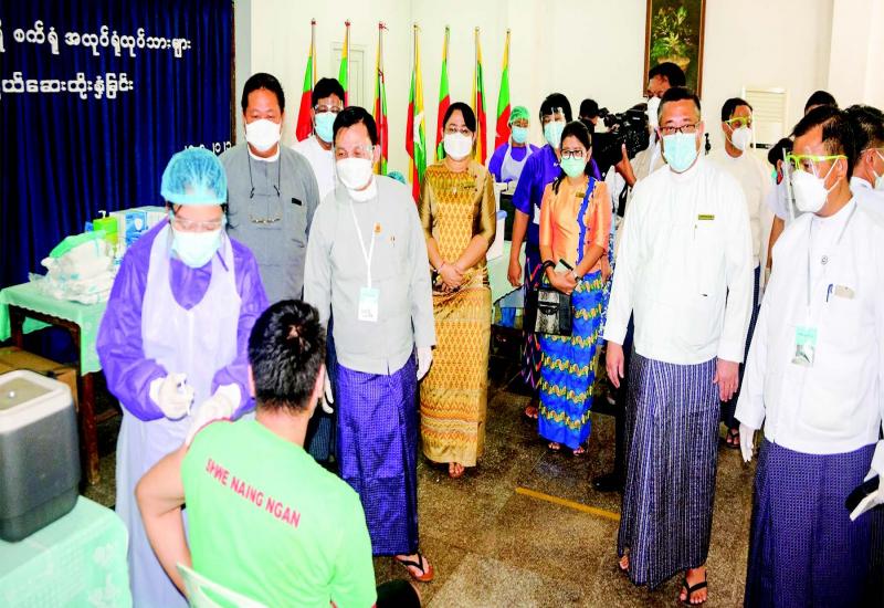 The officials of Mandalay Region completed the first COVID vaccination processes as per the target populations and priority groups and conducted the second vaccination programmes for those over the age of 65 in Aungmyaythazan Township yesterday.