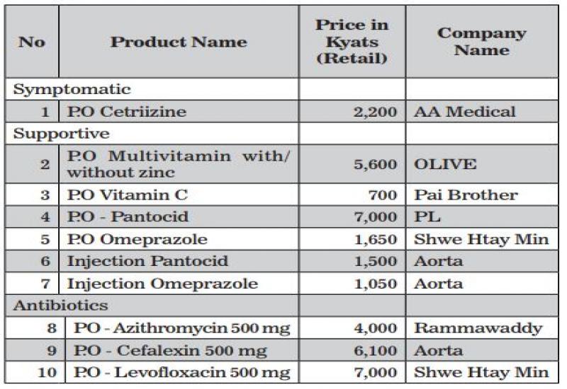 Price list of medicines commonly used against COVID-19 as of 6 pm on 27 August