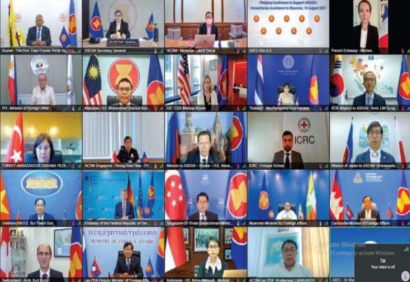 U Wunna Maung Lwin, Union Minister for Foreign Affairs attended the Pledging Conference to support ASEAN’s Humanitarian Assistance to Myanmar which was held via video conference yesterday afternoon, from the Ministry of Foreign Affairs, Nay Pyi Taw.