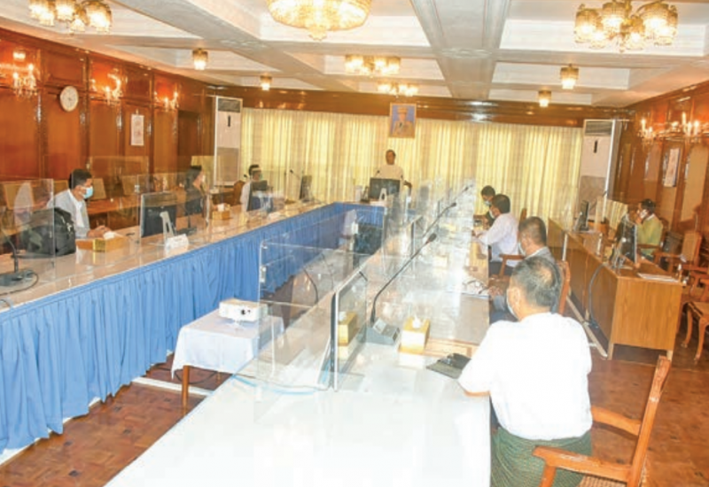 DISCUSSIONS on the distribution of imported oxygen for public hospitals and COVID-19 treatment centres in Yangon Region were held at 3 pm yesterday at the meeting hall of Yangon Region Administration Council.