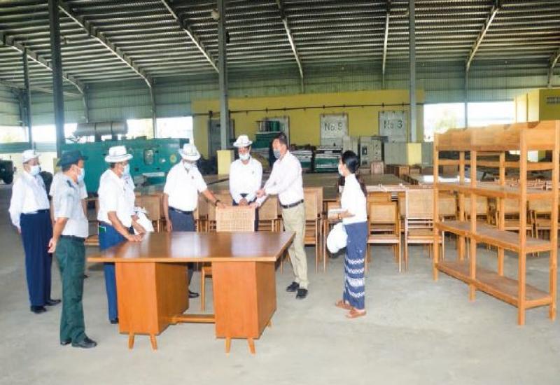 Union Minister for Natural Resources and Environmental Conservation U Khin Maung Yi and officials visited the Wood-based Industry Department in South Dagon Wood-Based Industrial Zone, Myanma Timber Enterprise and inspected the No (10) Furniture Factory yesterday morning in Yangon.