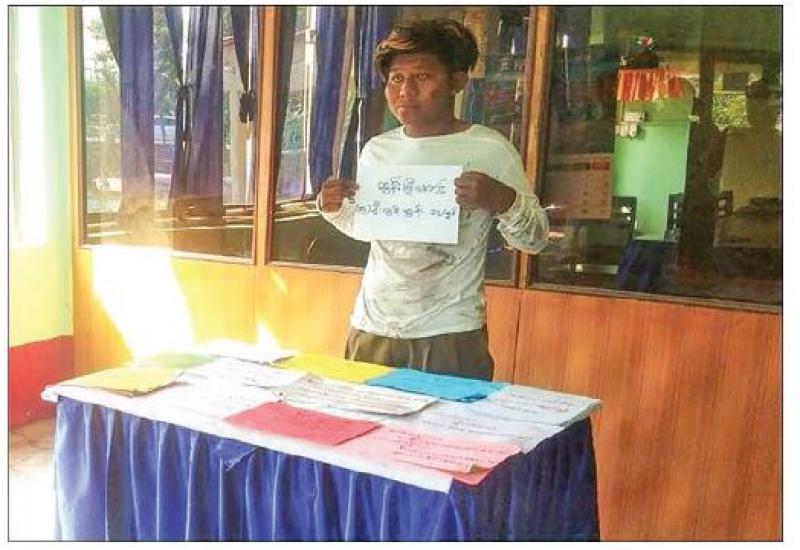 ONE man was arrested for putting anti-State slogans in front of the No (20) Basic Education Middle School yesterday morning in Pyigyitagun Township, Mandalay Region.