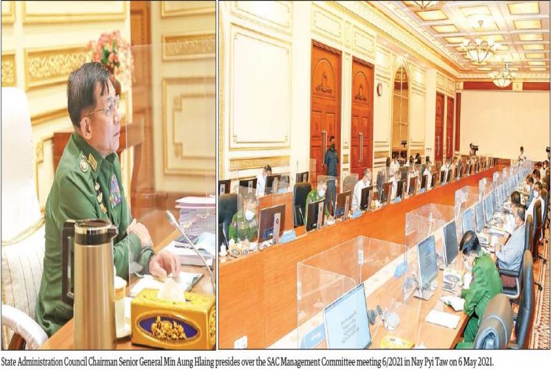 CHAIRMAN of the State Administration Council Commander-in-Chief of Defence Services Senior General Min Aung Hlaing delivered an address at the 6/2021 meeting of the Management Committee of the State Administration Council at the meeting hall of the Council Chairman’s Office in Nay Pyi Taw yesterday afternoon.