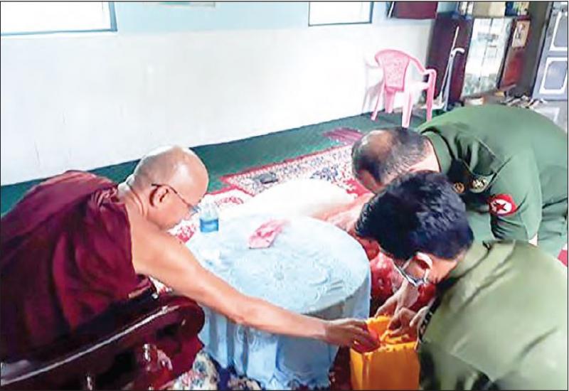 FAMILIES of Tatmadaw (Army, Navy and Air) provided four types of food rations –rice, salt, cooking oil and gram to the monasteries and nunneries in their respective military command areas. The Tatmadaw personnel also donated alms and offertories to the monks and nuns and conducted medical check-ups. The Yangon Command donated food rations, COVID-19 protective gear and offertories to the monks of Thathana Beikman Monastery in Myaing Thaya Village of Hmawby Township and Dhamma Rekkhita Monastery in No (2) Ward of Botahtaung Township yesterday. — MNA The Global New Light Of Myanmar