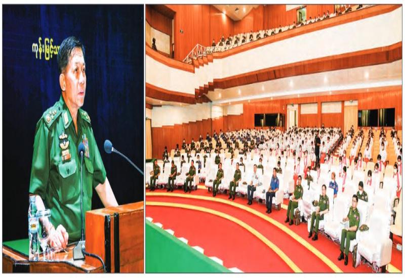 THE Tatmadaw is taking part in the leading role of national politics in accord with the 2008 Constitution, and it is a part of the State and the Tatmadawmen are also a part of the people. The Tatmadaw is an organization that defends the country. From the time independene was restored till today, the Tatmadaw has had striven to regain the independence and has been restoring the stability and tranquility. So, the history of the State and that of the Tatmadaw are inseparable. The leading role of national politics under the constitution is the political heritage given by the State. In the first term of the Hluttaw, Commander-in-Chief of Defence Services was appointed under the official gazette of the State by the president with the approval of National Defence and Security Council, said Chairman of the State Administration Council Commander-in-Chief of Defence Services Senior General Min Aung Hlaing in meeting with officers, other ranks and families of Pathein Station yesterday morning.