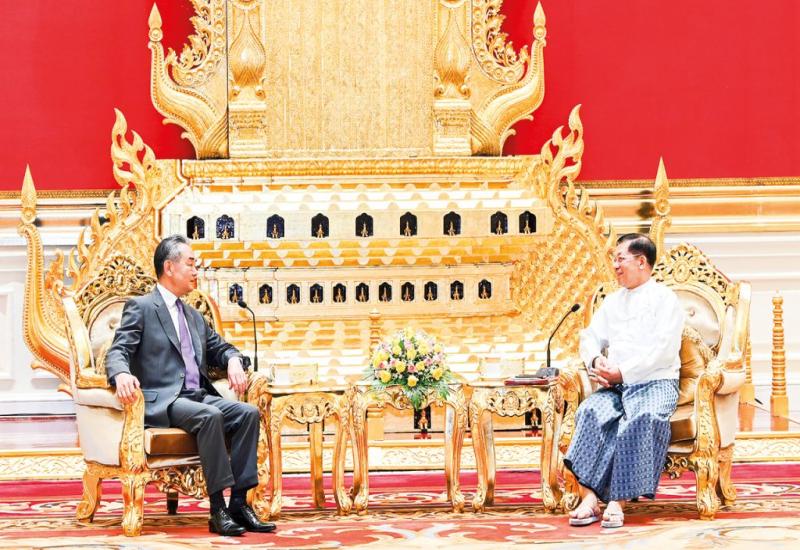 CHAIRMAN of the State Administration Council Prime Minister Senior General Min Aung Hlaing received a delegation led by HE Mr Wang Yi, Member of the Political Bureau of the CPC Central Committee and Minister of Foreign Affairs of the People’s Republic of China at the Credentials Hall of the Office of the State Administration Council Chairman in Nay Pyi Taw yesterday afternoon.