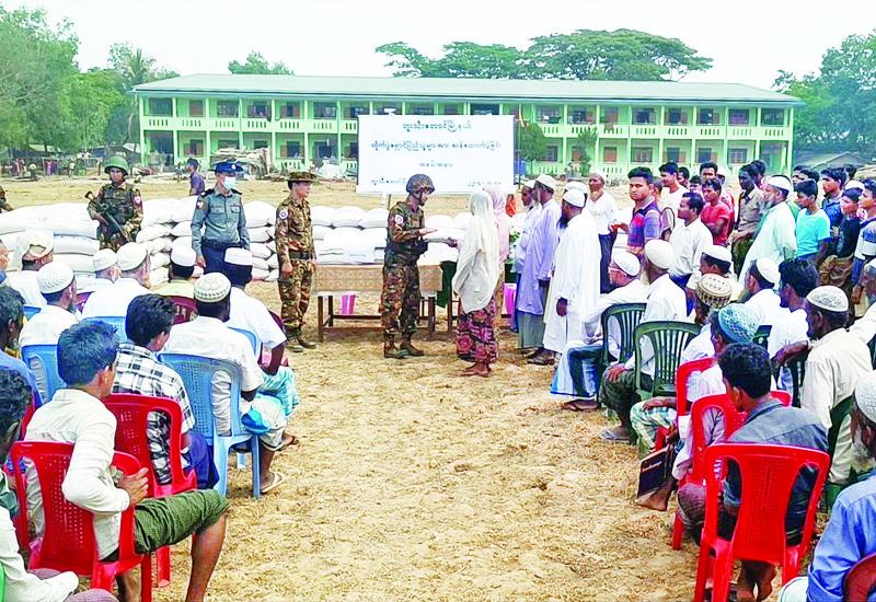 THE ceremony to provide rice bags for the temporarily displaced persons who are taking shelter in three temporary camps in Buthidaung Township of Rakhine State due to the attacks with heavy weapons and arson attack of AA terrorists targeting Kuntaing, Ywetnyotaung and U Hla Pe villages on 12 April was conducted at the Basic Education High School No 1 of that township yesterday.