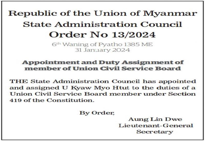 Appointment and Duty Assignment of member of Union Civil Service Board
