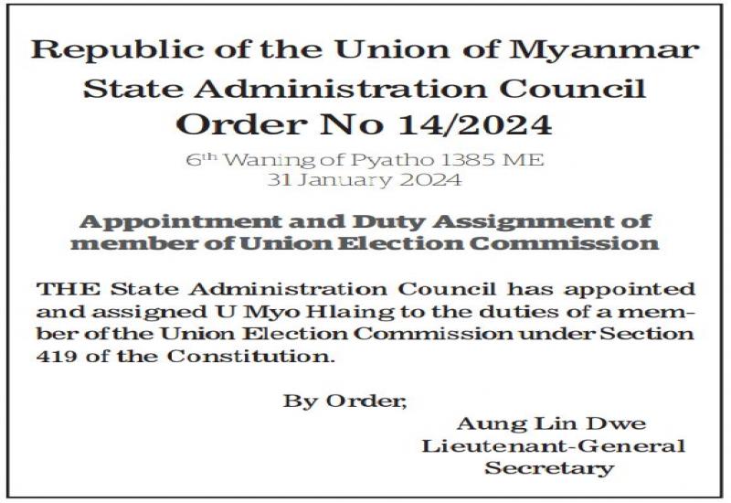 Appointment and Duty Assignment of Chairman of the Union Election Commission