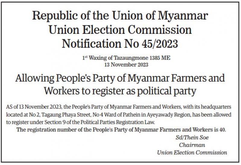 THE Government of the Republic of the Union of Myanmar has agreed to the proposed appointment of Mrs Aya Saad Mohamed Abdelkarim as Ambassador Extraordinary and Plenipotentiary of the Arab Republic of Egypt to the Republic of the Union of Myanmar with residence in Yangon.