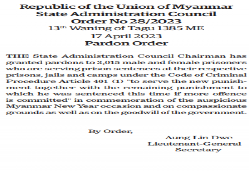 THE State Administration Council held a ceremony to listen to the recitation of Paritta on the occasion of Myanmar New Year 1385 ME for the citizens to be free from varieties of dangers at the Office of the SAC Chairman in Nay Pyi Taw yesterday morning.