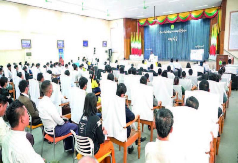 UNION Minister Dr Htay Aung of the Ministry of Hotels and Tourism met the directors-general of the ministry and staff, the Myanmar Tourism Federation president, chairpersons and members of relevant associations, chairs, secretaries and joint secretaries of hotel zones and tourism associations from states and regions in the hybrid system yesterday in Nay Pyi Taw.