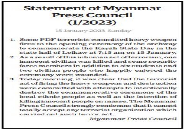 Statement of Myanmar Press Council (1/2023) 15 January 2023, Sunday