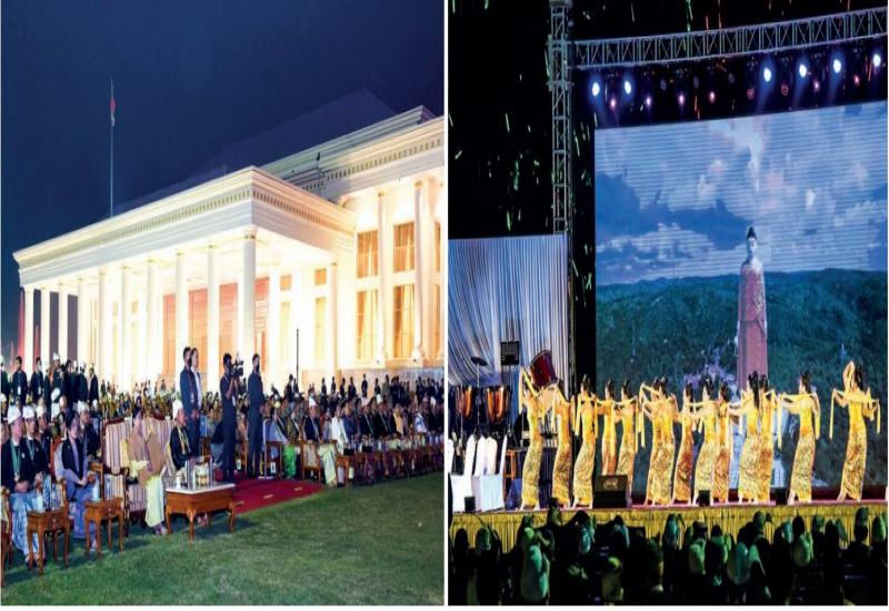 AN honorary dinner in commemoration of the 75th Anniversary (Diamond Jubilee) Independence Day hosted by Chairman of the State Administration Council Prime Minister Senior General Thadoe Maha Thray Sithu Thadoe Thiri Thudhamma Min Aung Hlaing and wife Daw Kyu Kyu Hla was held in conjunction with the entertainment on the lawn of the SAC Chairman Office in Nay Pyi Taw yesterday evening.