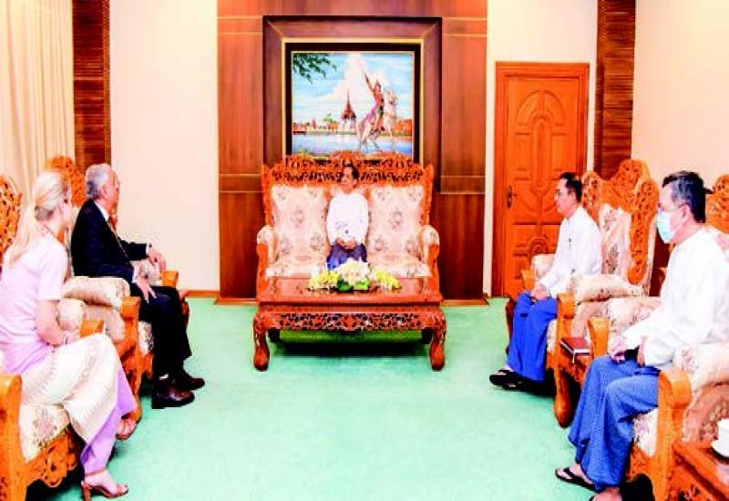 UNION Minister U Ko Ko Hlaing of the Ministrry of International Cooperation received Mr Sanjay Mathur, Regional Director of the United Nations Office for Project Services (UNOPS) Asia Region based in Bangkok at 10 am on 16 December 2022 at the ministry in Nay Pyi Taw.