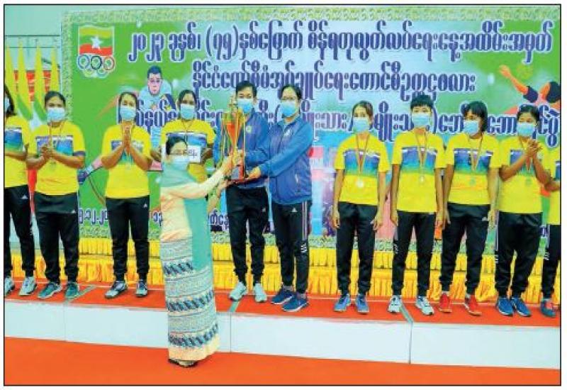 THE Department of Sports and Physical Education under the Ministry of Sports and Youth Affairs and the Myanmar Volleyball Federation jointly hailed Diamond Jubilee Independence Day and continued to hold final matches of the State Administration Council Chairman’s Trophy Inter-State/Region Invitational Volleyball (Men/Women) Tournament at the Wunna Theikdi Gymnasium B in Nay Pyi Taw yesterday morning. SAC members — Mahn Nyein Maung, Daw Aye Nu Sein, U Sai Lone Seng, Dr Banyar Aung Moe, and U Shwe Kyein— Union ministers, deputy ministers, officials from the Ministry of Sports and Youth Affairs and the Myanmar Volleyball Federation, officials from divisions and sports enthusiasts were present on the occasion.