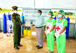 တပ်မတော်နှင့် အလှူရှင်များက အောက်ဆီဂျင်အိုးများ၊ ရောဂါကာကွယ်ရေး အထောက်အကူပြုပစ္စည်းများ နှင့် အာဟာရဖြည့်စားသောက်ဖွယ်ရာများကို တိုင်းဒေသကြီးနှင့်…