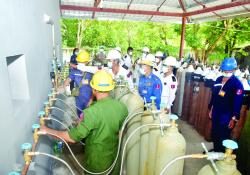 ကိုဗစ်-၁၉ ရောဂါ ကာကွယ်၊ ထိန်းချုပ်၊ ကုသရေး လုပ်ငန်းများအတွက် အောက်ဆီဂျင်လိုအပ်ချက်များ ကို ပိုမိုဖြည့်တင်းပေးနိုင်ရန်အတွက် သန်လျင် တပ်နယ်ရှိ…